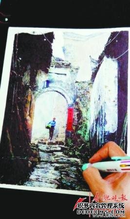 “有沒有一種‘藍(lán)’會(huì)讓你怦然心動(dòng)?”近日,微博上一組圓珠筆畫走紅,網(wǎng)友對(duì)畫作嘖嘖稱贊。作畫人名叫程維前,是安徽省藝校一名普通的大二學(xué)生。相比美術(shù)生的油彩和畫筆,他畫畫的工具只有一支六色圓珠筆。這樣“非主流”的繪畫工具,在他手中卻讓山川走獸、徽風(fēng)徽韻等題材演繹出別樣的風(fēng)采。 A 90后小伙畫畫不走尋常路 21歲的程維前,打小喜歡畫畫。2013年,他通過藝考進(jìn)入省藝校就讀美術(shù)設(shè)計(jì)相關(guān)專業(yè),多年勤奮終于得償所愿。入校之后,程維前因?qū)I(yè)所需暫別了油彩和鉛筆,但始終放不下“畫畫”這個(gè)愛好。為了不耽誤自己的專業(yè)學(xué)習(xí),他只能利用課余時(shí)間自己琢磨。 一次偶然的機(jī)會(huì),讓程維前接觸到了圓珠筆畫,簡潔的線條和豐富色調(diào)讓他為之著迷。“我是在瀏覽網(wǎng)頁時(shí)看見的,第一次看見有人用圓珠筆作畫也能將畫面表現(xiàn)得如此逼真完美,心就開始癢了。” 程維前買了一支黑色圓珠筆,開始按照臨摹的方式學(xué)習(xí)圓珠筆作畫的技巧。“剛開始的時(shí)候,自己跟別人畫出來的差距很大,但是我就照著同一個(gè)景物不停地畫,一直畫到自己滿意為止。過了一個(gè)月的時(shí)間吧,作品才有了一點(diǎn)樣子。”用程維前的話來說,這種學(xué)習(xí)方法叫“達(dá)芬奇式”。“達(dá)芬奇開始畫雞蛋的時(shí)候,也是這樣開始的。”