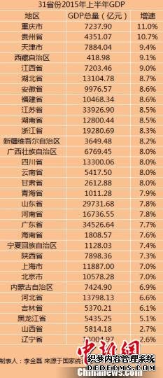 31省上半年GDP出爐 河北省增速排名倒數(shù)第五