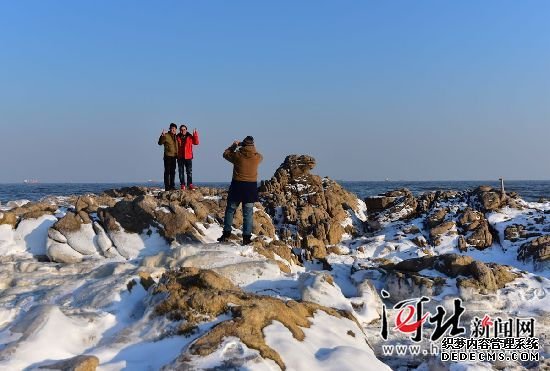 近期的一場降雪,將布滿礁石的北戴河海灘裝扮成冰雪世界。遼闊的海面、嶙峋的礁石以及飛掠而過的海鷗,吸引了不少市民前來賞雪景。圖為游人站在礁石上拍照留影。 (責(zé)任編輯:admin) |