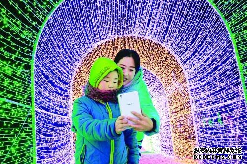 12月22日,游客在“時光隧道”中合影。當日,秦皇島國際夢幻燈光節(jié)在海港區(qū)駐操營鎮(zhèn)板廠峪景區(qū)舉辦,由LED燈組成的時光隧道、玫瑰花海、奇幻水簾燈、浪漫追星塔等近百個夢幻燈組照亮了整個景區(qū),成為絢麗的景觀,不僅成為海港區(qū)冬季旅游的新亮點,也為即將到來的元旦和春節(jié)營造出濃濃的喜慶氛圍。