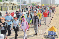 5月15日,徒步大會(huì)參與者在行進(jìn)中。 陽(yáng)光明媚,天空蔚藍(lán),聽(tīng)海濤陣陣,看海鳥(niǎo)翱翔徒步在中國(guó)最長(zhǎng)的親海沙灘木棧道,用雙腳丈量每一寸風(fēng)景,用心感受濱海之城的無(wú)窮魅力。 5月...