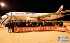 11月5日,機(jī)場(chǎng)工作人員與試飛成功的機(jī)組人員在秦皇島北戴河機(jī)場(chǎng)合影留念。當(dāng)日17時(shí)30分許,東方航空公司一架空客A320型、航班號(hào)為MU9005的飛機(jī)降落到河北省秦皇島市北戴河機(jī)場(chǎng),標(biāo)...