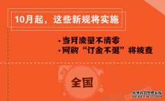 10月1日起,這些新規(guī)正式實施。三大運營商正式推出當月流量不清零;新食品安全法實施,買到不符合安全標準食品最低可索賠千元;雙11等電商促銷,不得限定退貨條件......還有哪些...