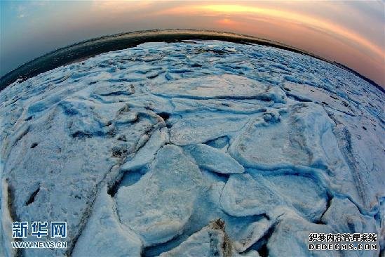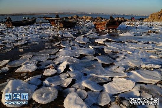 秦皇島冬日海岸線結(jié)冰 呈現(xiàn)“冰海奇觀”(圖)