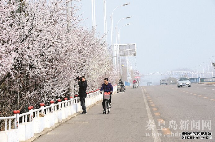 4月4日,秦皇島市民在濱海大道拍照。近日,隨著氣溫升高,秦皇島市多處杏花逐漸開放,不少市民在清明小長(zhǎng)假走出家門,在賞杏花的同時(shí),享受迷人的春光。